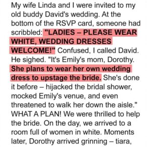 My wife Linda and I were invited to my old buddy David’s wedding. At the bottom of the RSVP card, someone had scribbled: “LADIES – PLEASE WEAR…