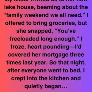 My sister invited us to her new lake house, beaming about the “family weekend we all need.” I offered to bring groceries, but she snapped, “You’ve freeloaded…