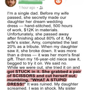 My Niece Destroyed the Wedding Dress My Late Wife Made for Our Daughter – She Was Quickly Brought Back Down to Earth