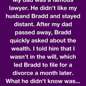 My dad was a famous lawyer. He didn’t like my husband Bradd and stayed distant. After my dad passed away, Bradd quickly asked about the wealth. I…