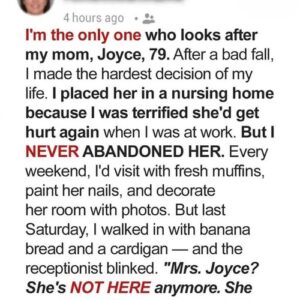 I’m the only one who looks after my mom, Joyce, 79. After a bad fall, I made the hardest decision of my life. I placed her in…