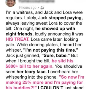 Eight hundred dollars plus. That’s what Jack’s “boys’ night out” bill came to, and he expected his wife, Lora, to foot it. Waitress Melanie, witnessing Lora’s despair,…