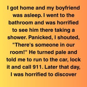 I got home and my boyfriend was asleep. I went to the bathroom and was horrified to see him there taking a shower. Panicked, I shouted, “There’s…