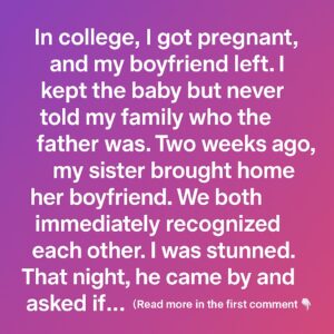 In college, I got pregnant, and my boyfriend left. I kept the baby but never told my family who the father was. Two weeks ago, my sister…