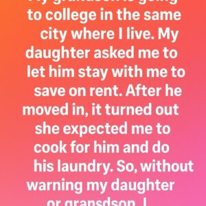 When my grandson got accepted into a college in the same city where I live, my daughter suggested that he stay with me to save on rent….