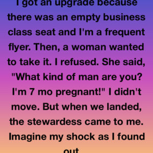 I got an upgrade because there was an empty business class seat and I’m a frequent flyer. Then, a woman wanted to take it. I refused. She…