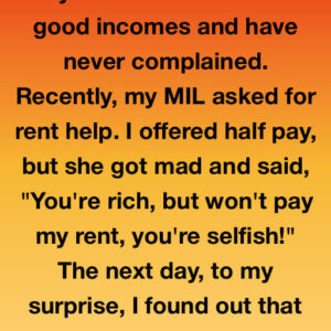 My husband and I have good incomes and have never complained. Recently, my MIL asked for rent help. I offered half pay, but she got mad and…
