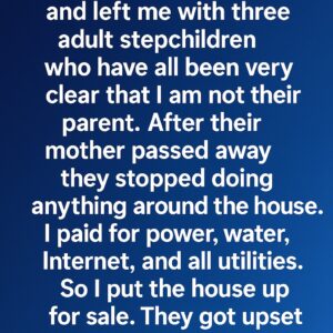 My wife passed away and left me with three adult stepchildren who have all been very clear that I am not their parent. After their mother passed…