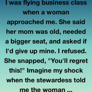I was flying business class when a woman approached me. She said her mom was old, needed a bigger seat, and asked if I’d give up mine….