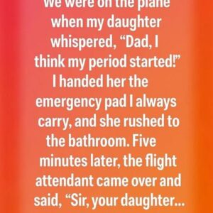 We were on the plane when my daughter whispered, “Dad, I think my period started!” I handed her the emergency pad I always carry, and she rushed…
