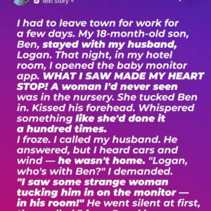 While away on a work trip, I checked the baby monitor expecting to see my toddler asleep—but instead, a strange woman was tucking him in like he…