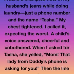I found a crumpled note in my husband’s jeans while doing laundry—just a phone number and the name “Tasha.” My chest tightened. I called it, expecting the…