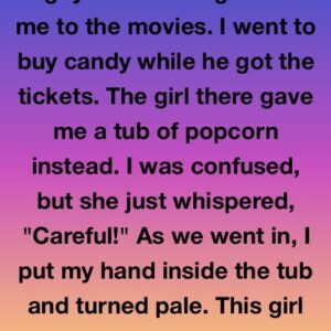 A guy I was seeing invited me to the movies. I went to buy candy while he got the tickets. The girl there gave me a tub…