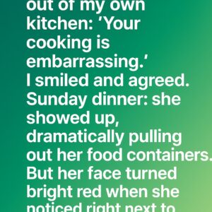 “Your cooking is embarrassing,” my daughter-in-law, Hannah, told me one Sunday morning as she insisted on taking over our family dinners. I simply smiled and agreed, even though…
