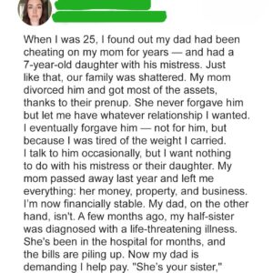 After My Mom’s Passing, Dad Demanded I Use Her Gift for His Other Child’s Needs