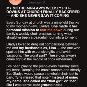 Every Sunday at church was a minefield thanks to my mother-in-law, Gladys. She made it her personal mission to tear me down during our family’s weekly choir…
