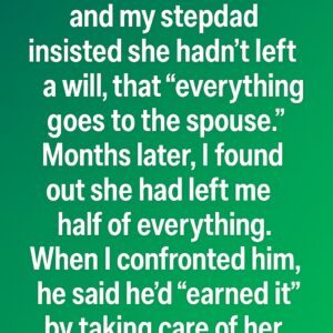 My mom passed, and my stepdad insisted she hadn’t left a will, that “everything goes to the spouse.” For a while, I believed him. Grief blurred the…