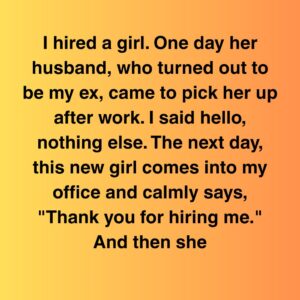 I hired a girl. One day her husband, who turned out to be my ex, came to pick her up after work. I said hello, nothing else….