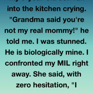 My 5-year-old son ran into the kitchen crying. “Grandma said you’re not my real mommy!” he told me. I was stunned. He is biologically mine. I confronted…