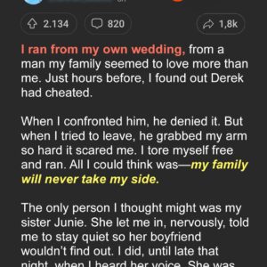 I ran from my own wedding, from a man my family seemed to love more than me. Just hours before, I found out Derek had cheated. When…