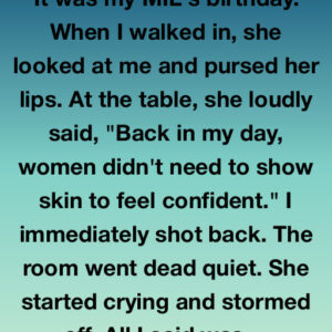 It was my MIL’s birthday. When I walked in, she looked at me and pursed her lips. At the table, she loudly said, “Back in my day,…