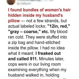 I found bundles of women’s hair hidden inside my husband’s pillow—not a few strands, but actual labeled locks: “12in, red,” “gray – coarse,” etc. My blood ran…