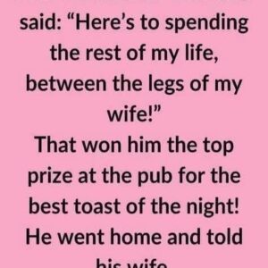 John O’Reilly hoisted his beer and said, “Here’s to spending the rest of me life, between the legs of me wife!” That won him the top prize…