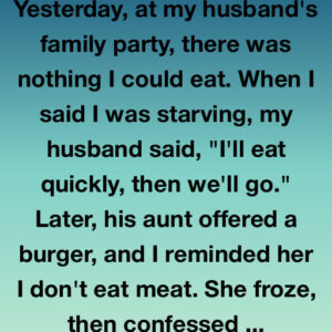 Yesterday, at my husband’s family party, there was nothing I could eat. When I said I was starving, my husband said, “I’ll eat quickly, then we’ll go.”…