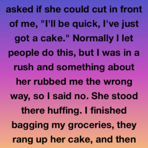 At the checkout, a woman asked if she could cut in front of me, “I’ll be quick, I’ve just got a cake.” Normally I let people do…