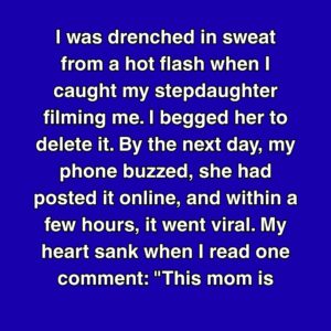 I was drenched in sweat from a hot flash when I caught my stepdaughter filming me. I begged her to delete it. By the next day, my…