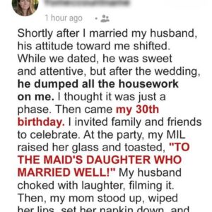 On my 30th birthday, my mother-in-law raised her glass and smirked, “To the maid’s daughter who married well!” My husband laughed—and filmed it. The room fell into…