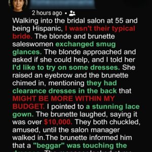 At 55 and proudly Hispanic, I walked into an upscale bridal salon excited to try on wedding dresses for the first time. The salon gleamed with elegance,…