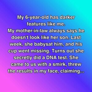 My 6-year-old has darker features like me. My mother-in-law always says he doesn’t look like her son. Last week, she babysat him, and his cup went missing….