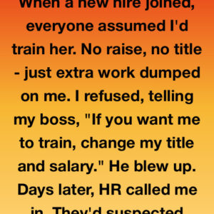 When a new hire joined, everyone assumed I’d train her. No raise, no title—just extra work dumped on me. I refused, telling my boss, “If you want…