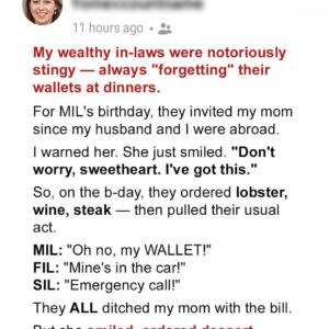 For years, my wealthy in-laws had a strange habit: they’d “forget” their wallets at restaurants, leaving others to pick up their lavish bills. I’d warned my husband,…