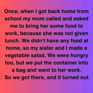 When I got home from school one afternoon, my mom called and asked if I could bring her some food to work. She hadn’t been given lunch….