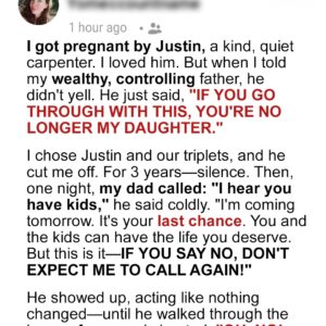 I got pregnant by Justin, a kind, quiet carpenter. I loved him. But when I told my wealthy, controlling father, he didn’t yell. He just said, “IF YOU…