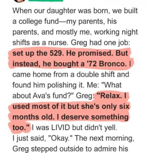 My husband, Greg, promised to set up our baby daughter Ava’s college fund—a combined $45,000 saved by both our families and my hospital overtime. But instead of…