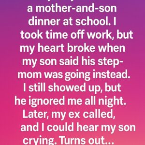 My 12 y.o. had a mother-and-son dinner at school. I took time off work, but my heart broke when my son said his step-mom was going instead….