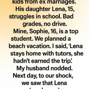 My husband and I have kids from ex marriages. His daughter Lena, 15, struggles in school. Bad grades, no drive. Mine, Sophie, 16, is a top student….