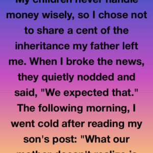 My children never handle money wisely, so I chose not to share a cent of the inheritance my father left me. When I broke the news, they…