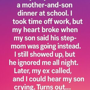 My 12 y.o. had a mother-and-son dinner at school. I took time off work, but my heart broke when my son said his step-mom was going…