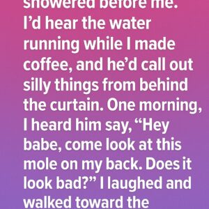 My husband always showered before me. I’d hear the water running while I made coffee, and he’d call out silly things from behind the curtain. One morning,…