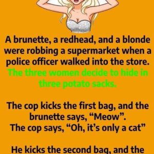 brunette, a redhead, and a blonde were robbing a supermarket when a police officer walked into the store. The three women decide to hide in three potato…