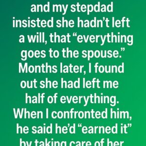My mom passed, and my stepdad insisted she hadn’t left a will, that “everything goes to the spouse.” For a while, I believed him. Grief blurred the…