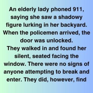 An elderly lady phoned 911, saying she saw a shadowy figure lurking in her backyard. When the policemen arrived, the door was unlocked. They walked in and…