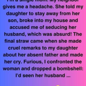 Single mom. My neighbor causes headaches. She broke into my house, instructed my daughter to stay away from her kid, and accused me of seducing her husband—absurd!…