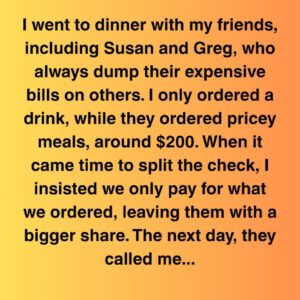I went to dinner with my friends, including Susan and Greg, who always dump their expensive bills on others. I only ordered a drink, while they ordered…