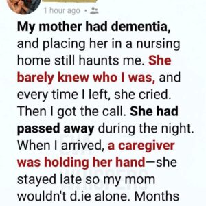 The guilt was unbearable. I left my mother in a nursing home, convinced I’d failed her when she needed me most. Every visit tore me open. Every…