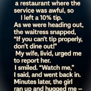 The waitress’s words cut like a knife. My wife wanted justice. I wanted something else. The night had already gone wrong, and that single, stinging sentence could…